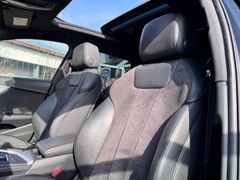 Die schwarze Außenlackierung harmoniert perfekt mit dem schwarzen Alcantara-Interieur, das durch Sportsitze und Sitzheizung ergänzt wird. Das Panorama-Glasdach lässt viel Licht ins Fahrzeuginnere.