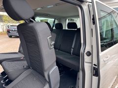 Audiosystem Composition Colour (Radio/CD-Player, MP3-Wiedergabefunktion), Fahrassistenz-System: Einparkhilfe vorn und hinten, Fenster im Lade-/FG-Raum: – schiebbar vorn, feststehend hinten links, Isofix-Aufnahmen für Kindersitz an Rücksitz, Klimaautomatik Climatronic (Fahrerhaus + Lade-/Fahrgastraum), Schiebetür Lade-/Fahrgastraum links, Sitz-Paket: 9-Sitzer, 3-3-3 (Fahrersitz und Beifahrerdoppelsitz, 3 Einzelsitze, 3er-Sitzbank)