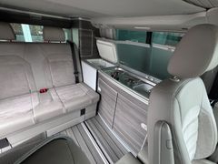 Abdeckung Schiebetürleiste, Abfallbehälter, Airbag Beifahrer abschaltbar, Airbag Fahrer-/Beifahrerseite, Antriebsart: Allradantrieb, Armaturentafel Komfort, Aufstelldach elektro-hydraulisch betätigt mit Bugfenster, Faltenbalg rot, Ausstattungs-Paket Licht + Sicht, Außenspiegel asphärisch, links, Außenspiegel konvex, rechts, Außenspiegel und Türgriffe außen in Wagenfarbe, Betriebsschalter 12V und 230V Wechselrichter, Bodenbelag im Fahrerhaus: Teppich, Bodenbelag im Lade-/Fahrgastraum Kunststoff in Holz-Optik, Campingtisch, Chrom-Paket, Doppeltonfanfare, Dämmglas-Paket, Einbauschränke Dark Wood, Fahrassistenz-System: Berganfahr-Assistent, Fahrassistenz-System: Bremsassistent (HBA), Fahrassistenz-System: Multikollisionsbremse (Multi Collision Brake), Fahrwerk 17", Fenster im Lade-/FG-Raum: – feststehend, vorn und hinten rechts, Fliegengitter Schiebefenster links, Funkschlüssel (2) klappbar, Haltegriffe A-Säulen, Handschuhfach abschließbar, Heckscheibe Doppelverglasung / Dämmglas mit Wischanlage, Innenausstattung: Dekoreinlagen Dark Silver brushed (Dekorband Black Glossy), Innenbeleuchtung Camper Komfort Plus, Innenleuchten im Lade-/FG-Raum: Trittstufenleuchten, Isofix-Aufnahmen für Kindersitz an Rücksitz, Karosserie/Aufbau: Motor Caravan, Karosserievariante: Aufstelldach, Kindersicherung an den Schiebetüren, Klimaautomatik Climatronic (Fahrerhaus + Lade-/Fahrgastraum), Kompressor-Kühlschrank, Kraftstofftank: 70 Ltr., Küchenblock, Lenksäule (Lenkrad) verstellbar, LM-Felgen, Markisenleisten schwarz, Motor 2,0 Ltr. – 150 kW TDI, Multifunktionsanzeige Plus, Radstand 3000 mm, Raucher-Paket, Reifenkontroll-Anzeige, Schadstoffarm nach Abgasnorm Euro 6, Scheinwerfer und Heckleuchten LED, Schiebetür Lade-/Fahrgastraum rechts, Schubladen unter Dreiersitzbank, Sitzbezug / Polsterung: Alcantara, Sitze im Fahrerhaus: Beifahrersitz drehbar, Sitze im Fahrerhaus: Fahrer- und Beifahrersitz heizbar, Sitze im Fahrerhaus: Lendenwirbelstützen Fahrer- und Beifahrersitz, Sitze im Lade-/FG-Raum: 2.Reihe, 2er-Sitzbank, verschiebbar und ausklappbar, Sonnenschutzrollo / Gardinen im Fahrerhaus, Sonnenschutzrollo im Fahrgastraum, Standheizung mit Fernbedienung, Zeitschaltuhr und Zuheizer, Start/Stop-Anlage Motor, Steckdose 230V (mit Einspeisung für Batterieaufladung), Stoßfänger in Wagenfarbe, Wärmeschutzverglasung, Zentralverriegelung mit Fernbedienung und Innenbetätigung, Zul. Gesamtgewicht 3,08 t, Zuziehhilfe für Heckklappe, Zuziehhilfe Schiebetür rechts